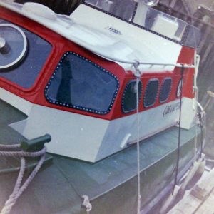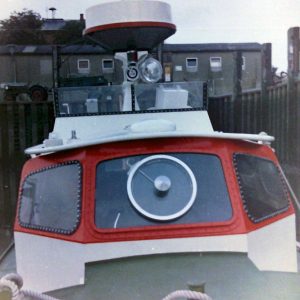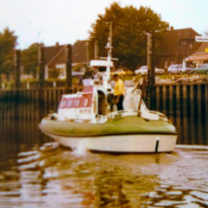 – 1980er – Seenotrettungsboot im Fischerhafen mit neuer Farbgebung.